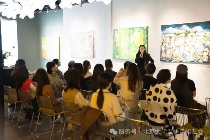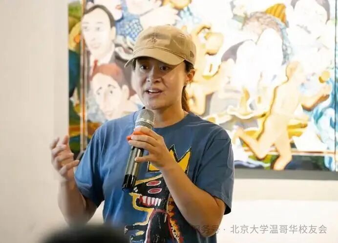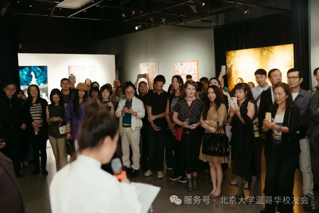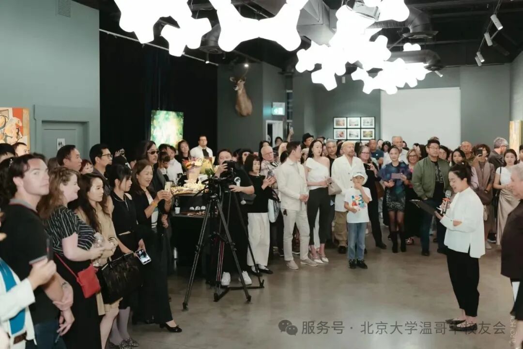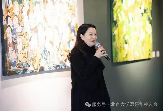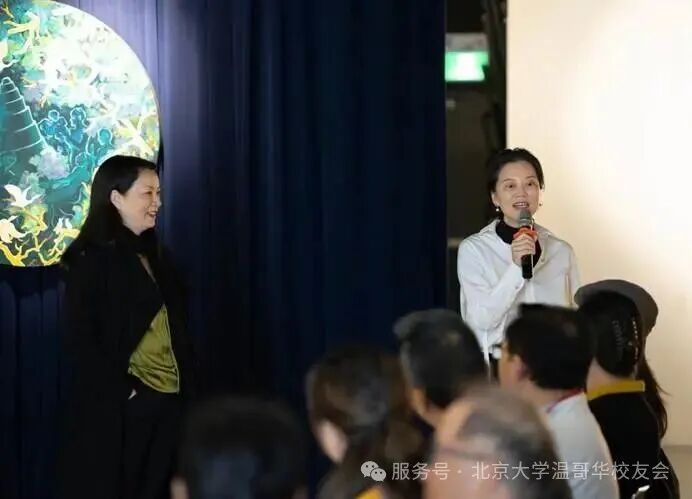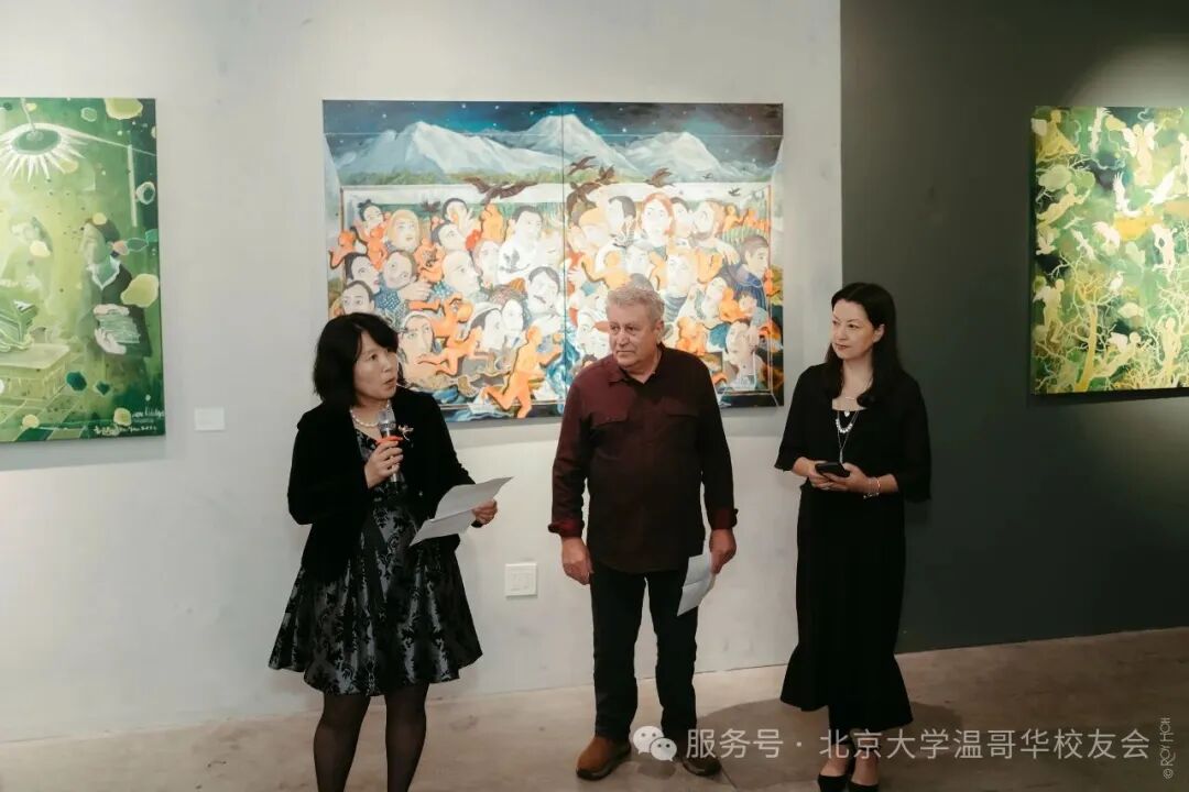 北京大学温哥华校友会副会长阴晴开场致辞,她代表校友会热烈欢迎到场的校友与嘉宾,并介绍了艺术家郭燕女士的创作背景与艺术成就,郭燕热心公益事业、提携和支持新生代画家的故事令人印象深刻。