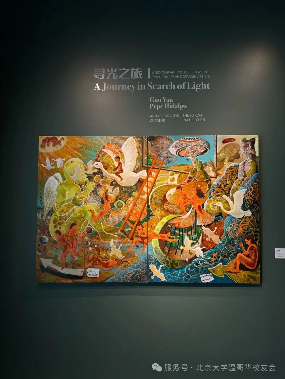 在随后的导览环节中,郭燕亲自带领大家参观展览,分享了她与西班牙艺术家佩佩·伊达尔戈合作的心路历程,以及创作背后的灵感与故事。校友们在观展过程中热烈交流,现场氛围温馨而充实。
