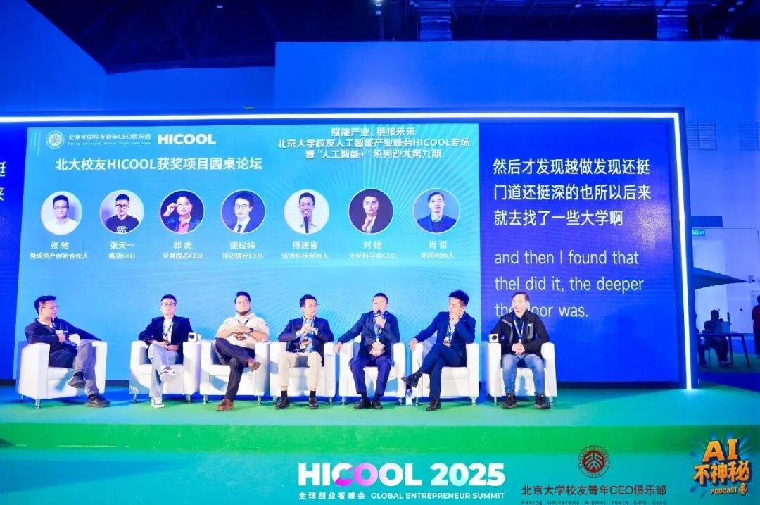 北大校友HICOOL获奖项目圆桌论坛由势成投资合伙人张驰主持,霸蛮CEO张天一、炎黄国芯CEO郭虎、昆迈医疗CEO盛经纬、清溥科技创始人傅建省、火星科学盒CEO刘扬、美因创始人肖哲等嘉宾围绕AI在各行业的应用和挑战、创业心得体会、未来趋势展望等进行了深入讨论,现场气氛热烈。
