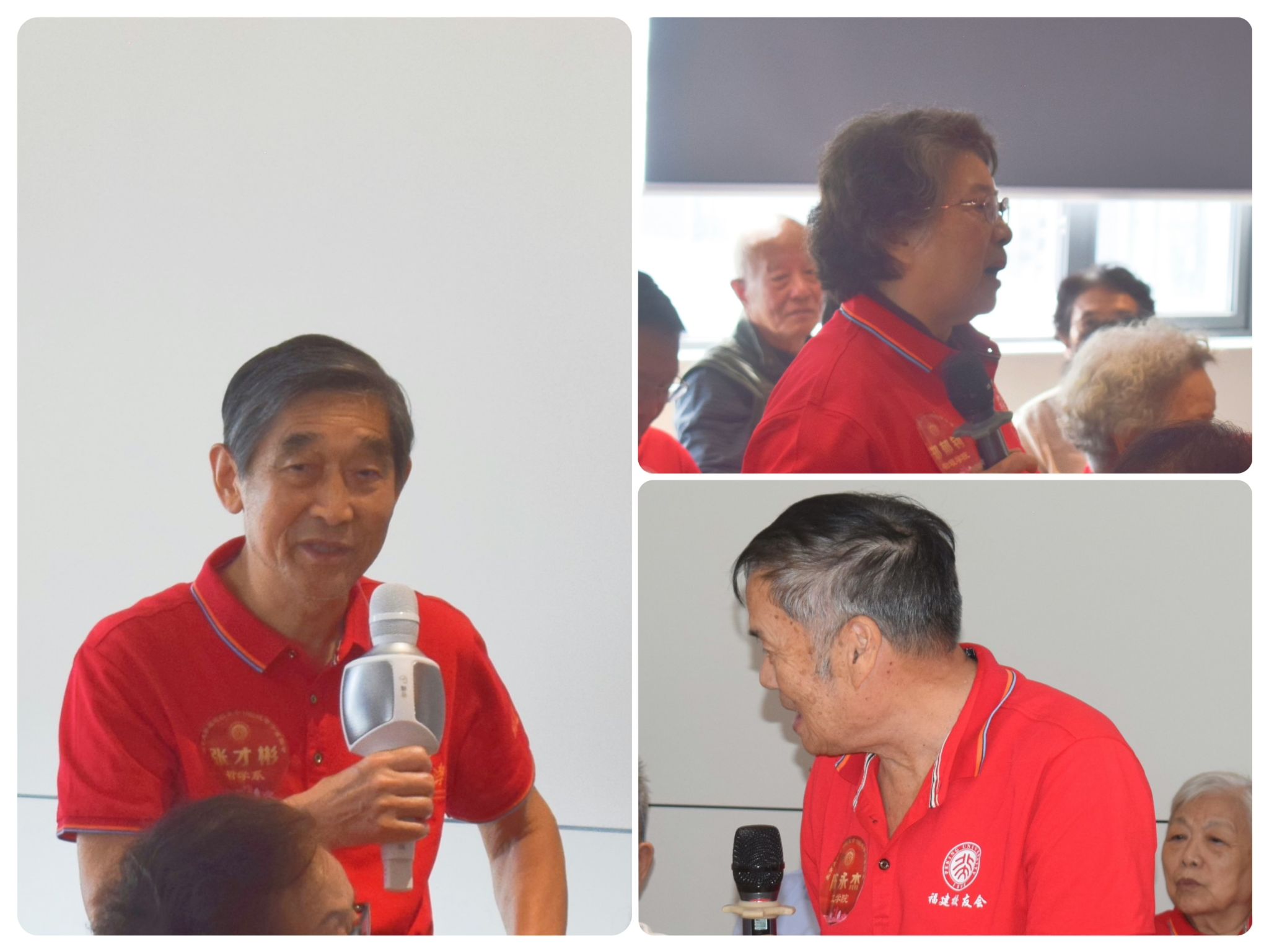 许榕生学长忆及当年因独特的解题思路被北大破格录取,眉宇间依然闪烁着少年才俊的光芒,他讲述自己在中国科学院工作期间,开通中国第一条国际互联网专线的历史性贡献,话语中带着那个年代知识分子的自豪与担当。卢建声学长动情地说,北大这块“金字招牌”,是他一生奋斗不止的动力源泉,激励他在教学岗位上带领学生投身科技创新的浪潮。刘清泉学长则分享了退休后“乐山乐水”、寄情自然的淡泊心境。专程从重庆飞回的黄以康学长,风趣地分享旅居经验,邀约大家共赴一场“候鸟式”的退休生活。自幼在北京长大的张才彬学长,则讲述了自己辗转多地、最终为爱妻定居福州的浪漫故事,感叹校友会如家一般的温暖。从厦门赶来的郑郁钊学姐分享了身为北大人的骄傲,以及在人生关口得到校友无私帮助的感人经历,这份北大情缘甚至传承给了孙辈,激励后代追求卓越。陈永杰学长追忆了入学即赴昌平参加“社教”的特殊经历,带领大家重温了那个特殊年代的集体记忆。主持人丁友玲学姐亦分享了自己扎根基层、发明“鲎试剂”荣获国家大奖,后又毅然回国创业的传奇人生。最后,“老五届”代表欧潭生学长对1965级校友致以祝贺,盛赞他们是幸运的一代,在各行各业成就斐然,为母校增光添彩。
