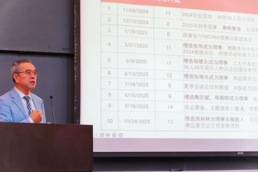 北京大学新英格兰校友会会长续然在执行团队年度工作报告中表示,校友会在过去一年中共举办五十余场高质量活动,累计吸引超过一千五百余人次参与,并与新英格兰地区超过十四个兄弟组织深化合作。在此基础上,校友会重点打造并扩大了品牌活动的影响力:“蛇年春节晚会”规模再创新高,吸引了来自各界的校友和家庭共庆佳节;“秋季迎新烧烤”参与人数显著增长,为新老校友搭建了温暖的交流平台。与此同时,校友会也做出了一系列的创新,与波士顿地区5大校友会联合举办的首届“校友杯”高尔夫球赛成为区域校友组织协作的新亮点,进一步增强了社区凝聚力。今年校庆期间,举办长跑与“从燕园到哈佛:一座图书馆连接的中美学术传奇”主题讲座,让校友在运动与人文并重的氛围中共同致敬母校传统。