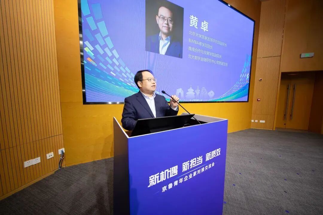 黄卓代表学院向出席活动的领导和参会的企业家们致以热烈欢迎,欢迎校友们“回家”。他讲述了北大国发院的发展历程,介绍了学院的多元化课程体系与独特的教学方法,以及在宏观经济、产业发展、金融市场等领域的研究成果。