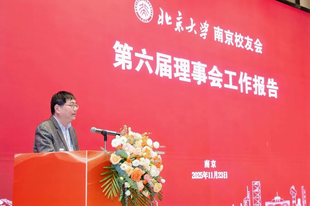 王炜作《第六届理事会工作报告》,他表示,北京大学南京校友会第六届理事会自2021年12月换届以来,组织建设不断加强,相继成立国发院分会、科技创新分会,以及读书会、足球、羽毛球等兴趣小组,丰富校友交流;服务校友方面,持续开展迎新活动,举办金融论坛、项目路演、校友企业行,为校友发展搭建平台;2023年“北京大学南京校友之家”正式运营,为校友交流提供实体空间;成功协办2022年北京大学全球金融论坛,并积极走访母校院系,促进交流合作。