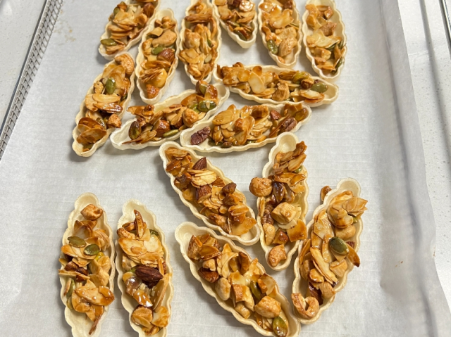 活动开始前,袁瑗老师首先向大家介绍了本次烘焙的原料和烘焙技巧,随后家长和孩子们便开始了各自的烘焙之旅。在烘焙过程中,我们看到许多温馨的画面:母亲帮助女儿切坚果,奶奶帮孙女装填糯米船......每一个动作都充满了爱与耐心。