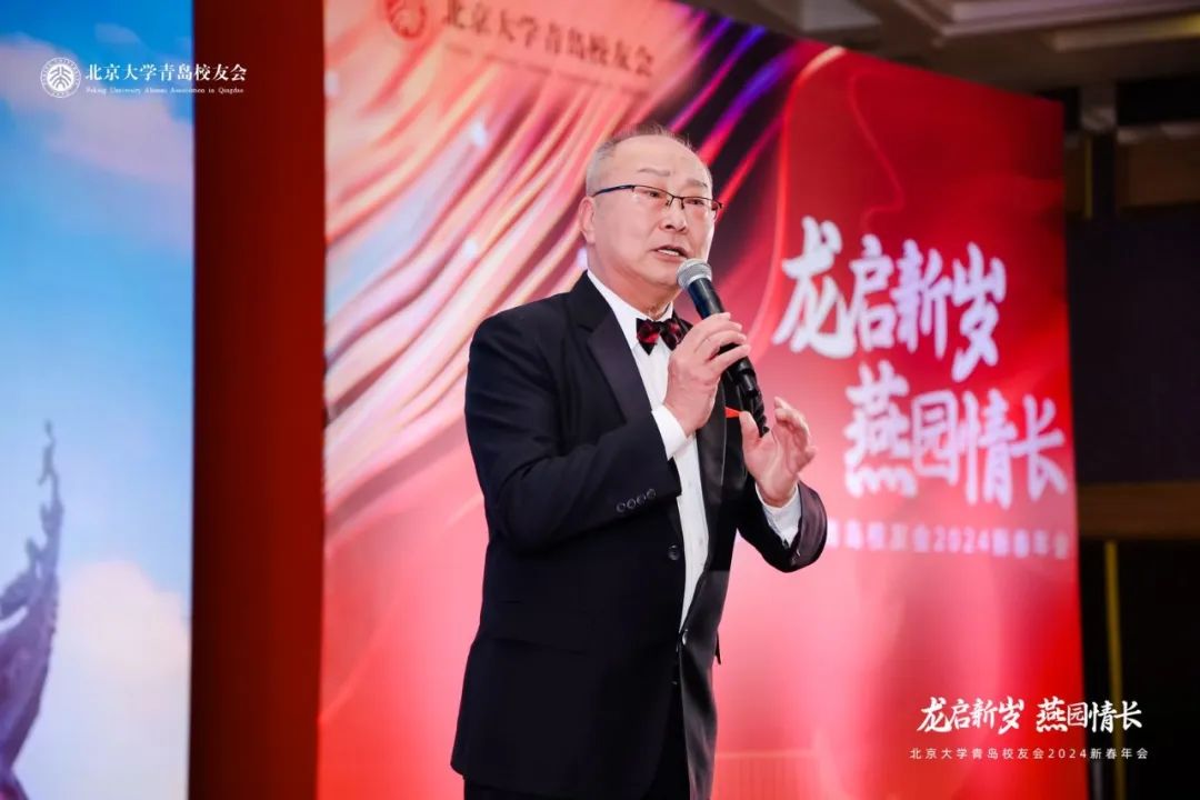 活动伊始,马化祥发表致辞,为校友们带来母校的关怀和祝福。他充分肯定了青岛校友会在为校友们搭建交流平台、促进校友之间合作与发展所做出的努力,并表示期待青岛校友会不断发展壮大,为北大的校友群体贡献力量。孙宝江对北京大学青岛校友会(以下简称:青岛校友会)新春年会时隔三年的重启表示祝贺,并表达了对青岛校友会工作的支持。