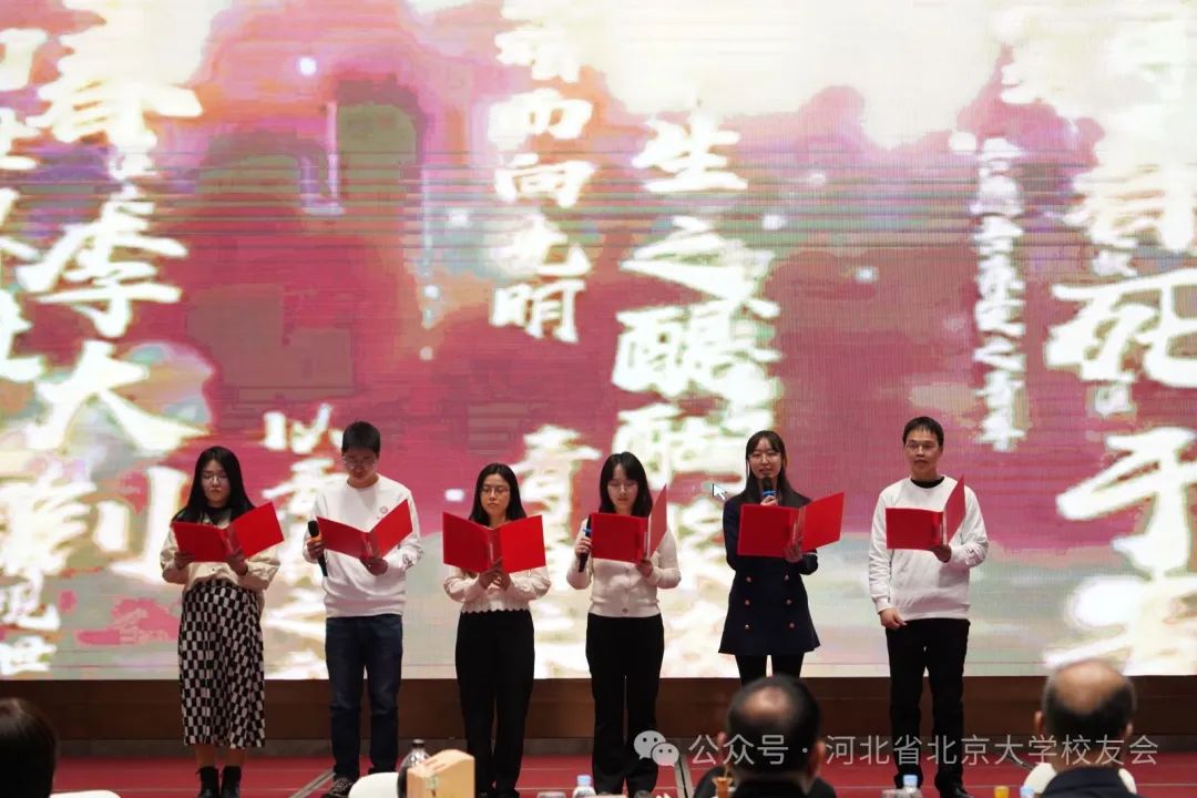 在新春团拜会文艺汇演环节,2023届选调生校友王紫莹、2009届校友张海水担任主持。2023届新生代表表演朗诵,医学部校友联合石家庄秀场舞团表演拉丁舞、大合唱,校友企业则表演非物质文化遗产“变脸”,节目精彩纷呈。