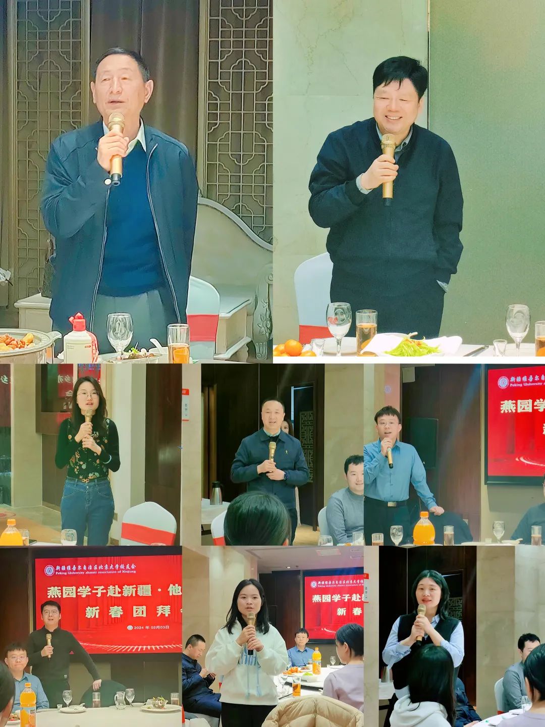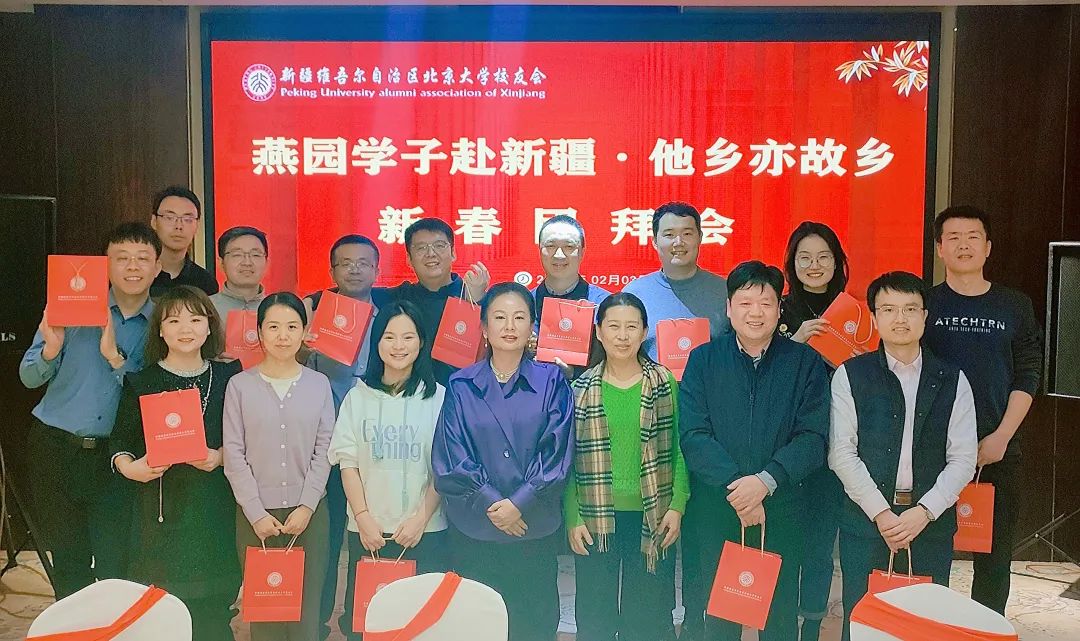2024年2月3日,新疆维吾尔自治区北京大学校友会(以下简称:新疆校友会)在乌鲁木齐海通五星大饭店举办“燕园学子赴新疆·他乡亦故乡”新春团拜会。新疆校友会常务副会长兼秘书长罗英、名誉会长张野、副会长兼人事部部长马迎春、副秘书长兼宣传部部长阿依努尔·卡马、顾问李忠禄、艺术团指导黄俊萍,校友朱大庆、董向东,及13位2023届校友出席此次活动。活动由阿依努尔·卡马主持。
