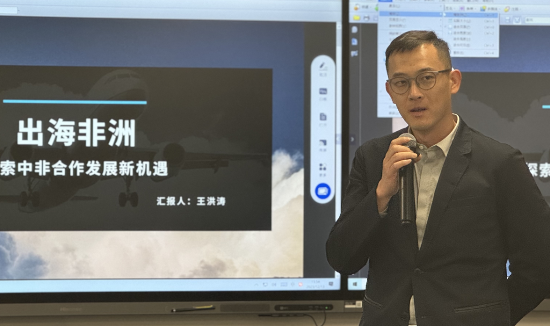 阳光国际旅游文化有限公司总经理王洪涛校友进行了主题为"探索中非合作发展新机遇"的分享。他指出,中国的"一带一路"倡议和中非合作论坛为中非合作提供了良好的机会,推动了非洲的经济发展。这为中国企业在非洲市场寻找商机提供了有力支持。王洪涛校友认为,在出海非洲的机遇和方向方面,农业投资、矿业投资、制造业和服务业等领域存在着大量的商机。