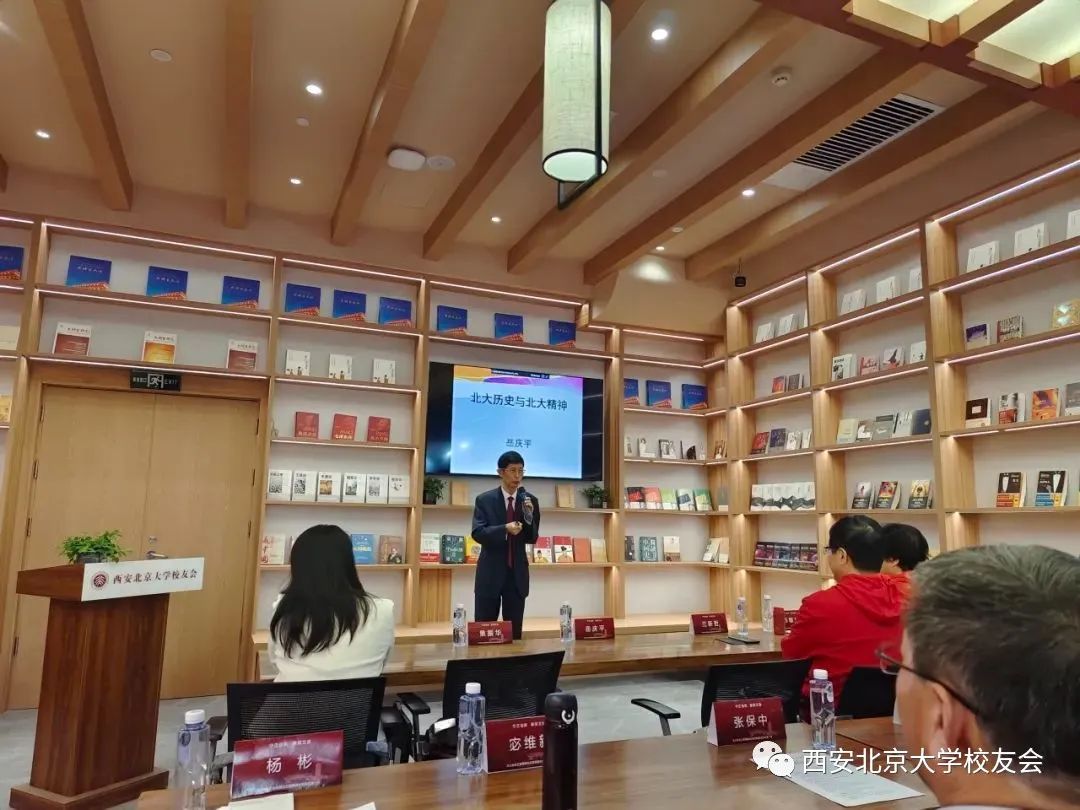 活动伊始,杨彬首先介绍了西安校友会的发展历程,以及北京大学校友之家的成立历程。西安校友会成立于1984年12月28日,于2001年2月23日在西安市民政局注册,是最早一批在陕成立并正式注册的高校校友会组织。2023年6月15日,为深化校企合作,共建人才培养平台,北京燕园学衡教育科技集团有限公司与西安城市发展集团有限公司本着合作共赢的原则,共同推进了北大校友之家的建立,为西安北京大学校友会注入新的动力,增加新的平台,开创新的局面。
