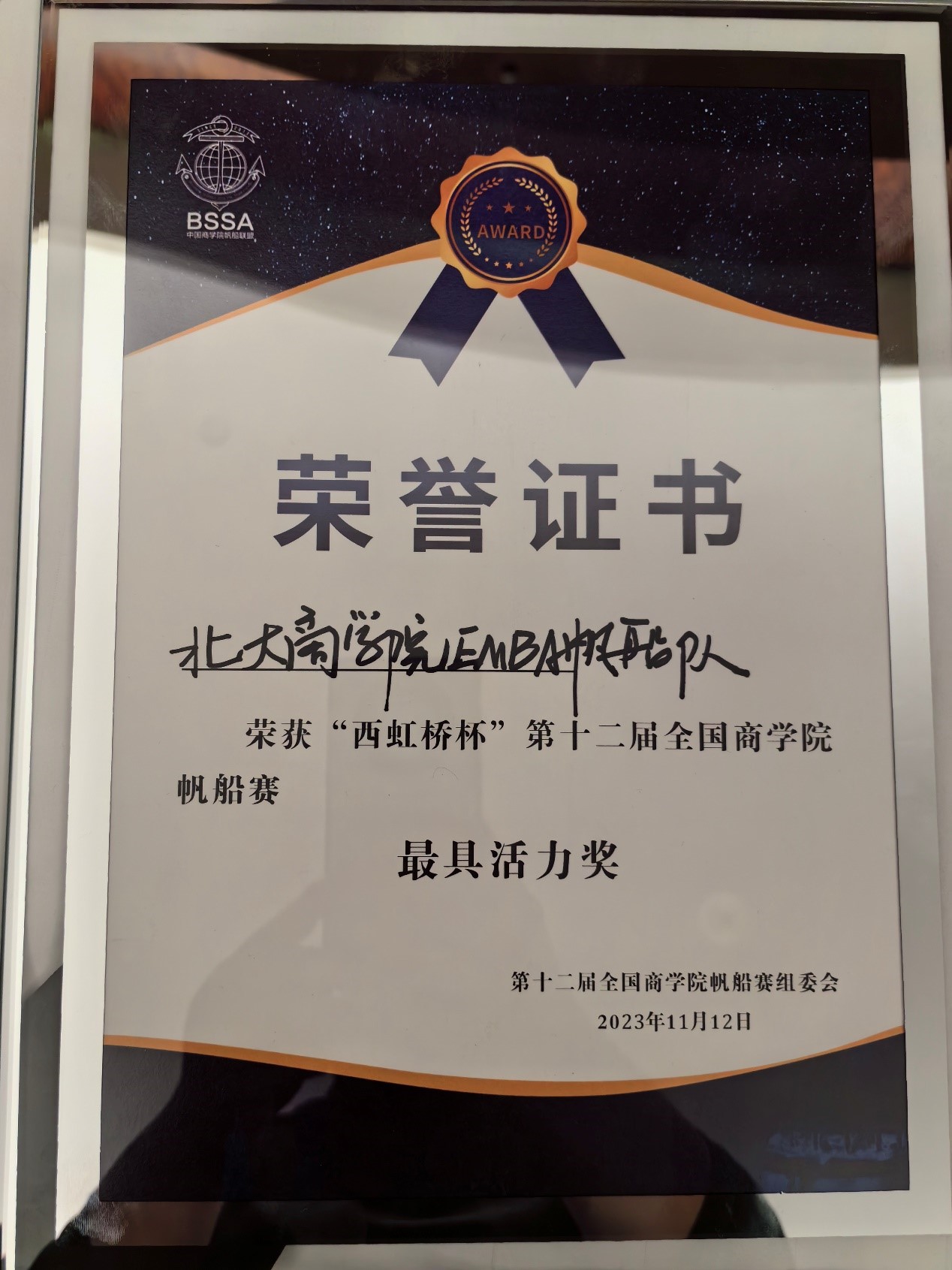 2023年11月10-12日,北京大光华管理学院、汇丰商学院、国家发展研究院的EMBA、MBA校友组建北大商学院帆船联队,参加在上海淀山湖举办的第十二届全国商学院帆船赛。