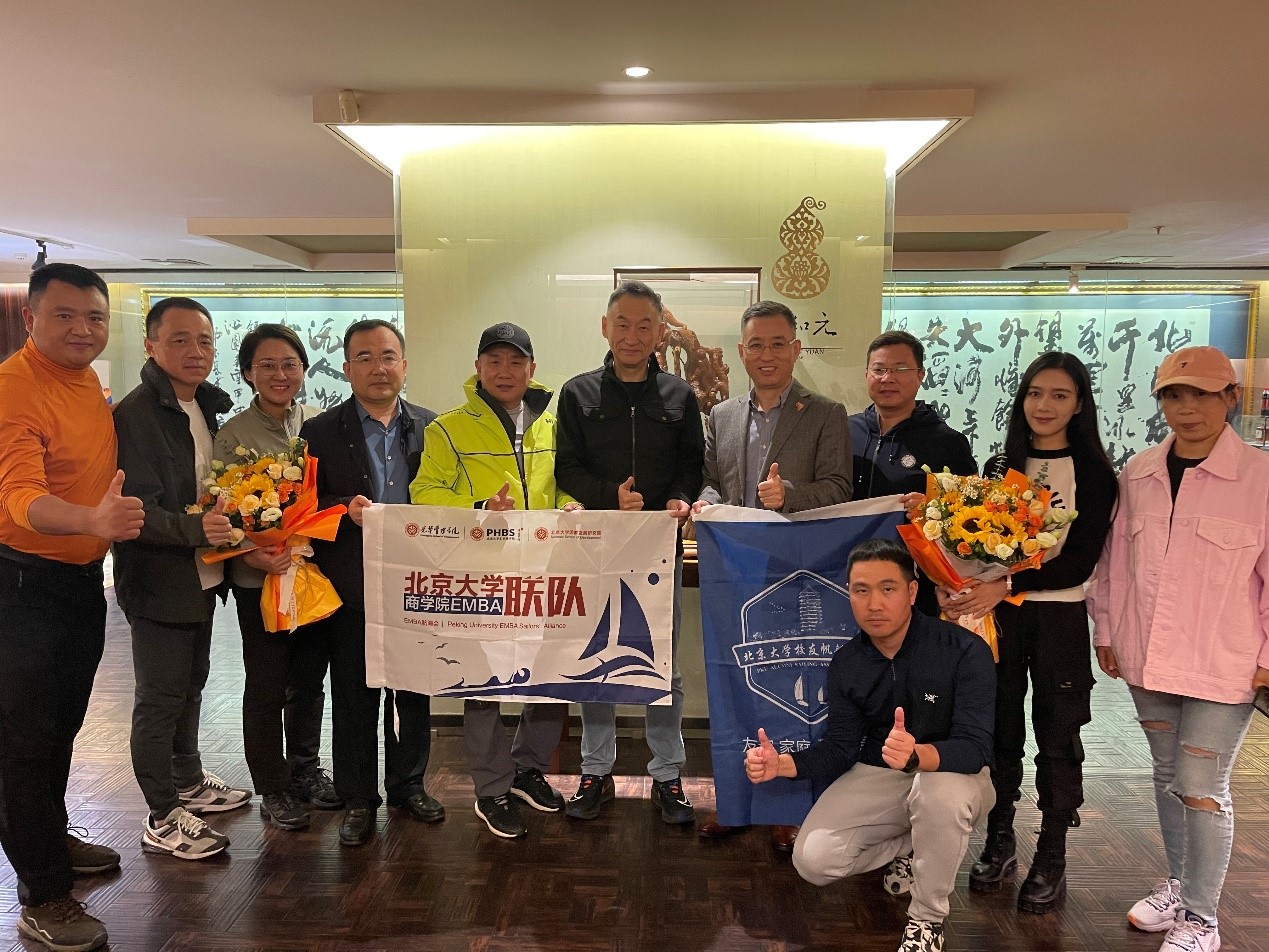 北大商学院校友帆船联队,是参赛队伍中来自北方京津冀名校商学院的唯一一支赛队,队员们大多来自北方,平时在一起练习的机会较少,登船前彼此并不熟悉,大多数队员都没有比赛经验,甚至在赛前不到一周,由于各种业务繁忙等原因多达四位有经验的水手校友临时请假缺阵,依照规则,船队不得不临时又补充了几位小白水手,赛队在总领队国发院EMBA2000东子哥的激励和鼓舞下,最终成队出阵,大家凝心聚力,从容迎接挑战。