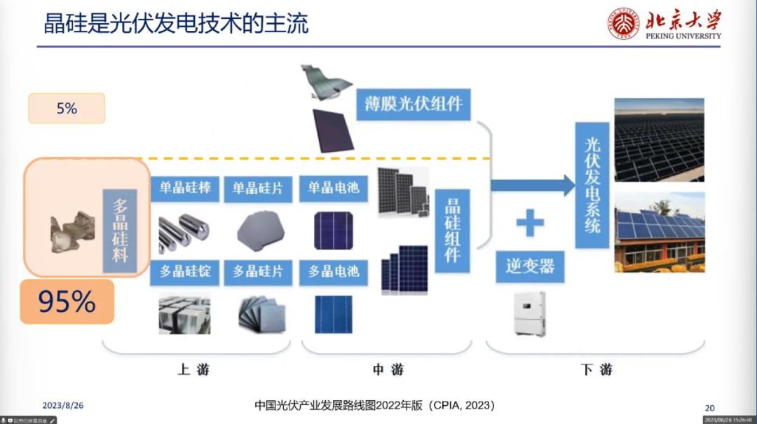 在第四部分,段野介绍了晶硅光伏产业链的情况并详细介绍了晶硅产业的上、中、下游技术及众多场景应用案例。