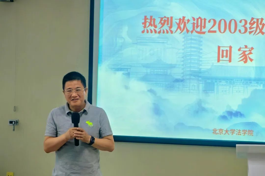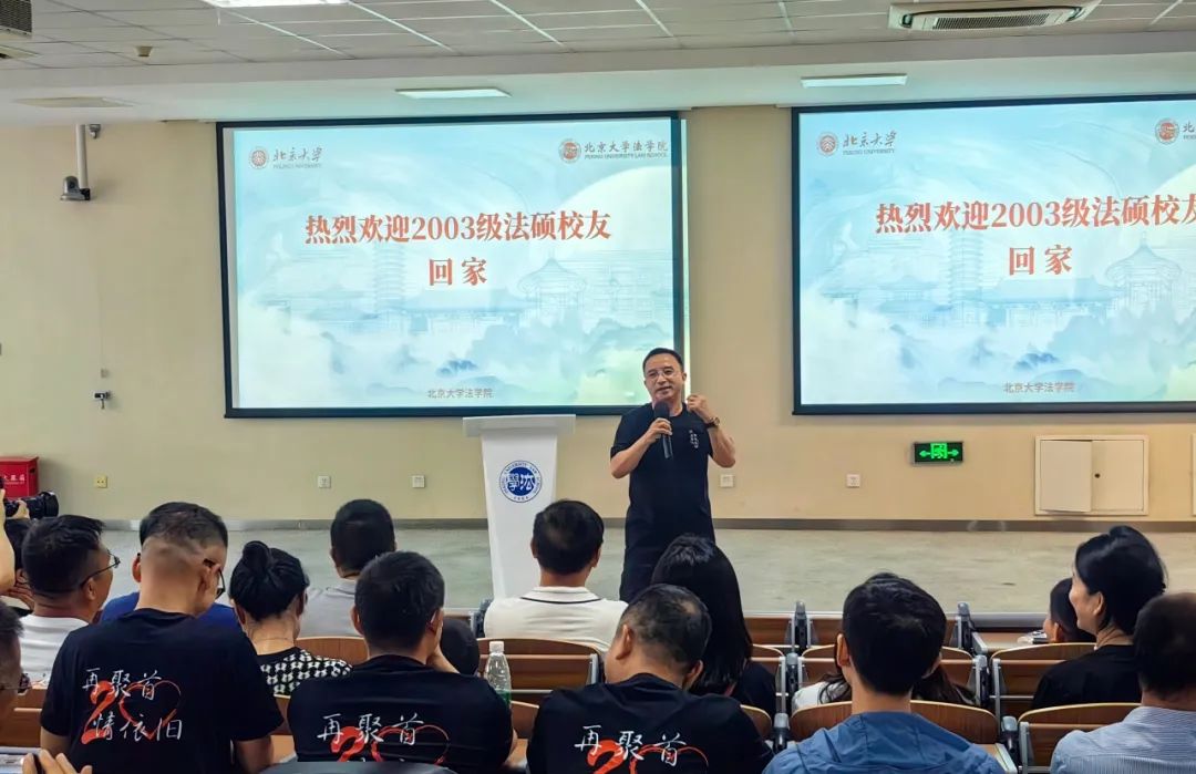 2023年8月19日上午,北京大学法学院2003级法硕校友入学20周年纪念活动于凯原楼80级教室顺利举办。北京大学法学院党委副书记路姜男,法学院刘剑文教授、楼建波教授,校友工作办公室主任党淑平、副主任鲁昕鑫,2003级法硕校友及亲属80余人参加活动。徐海伦校友担任活动主持人。