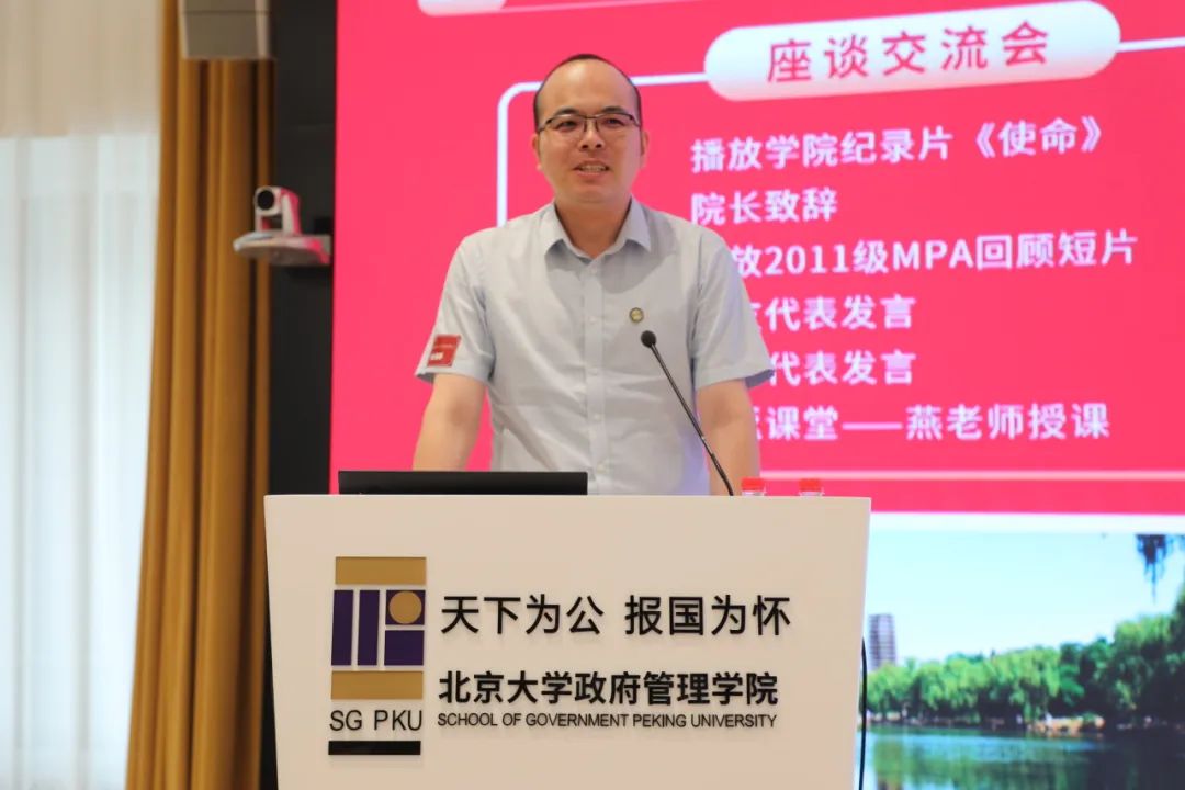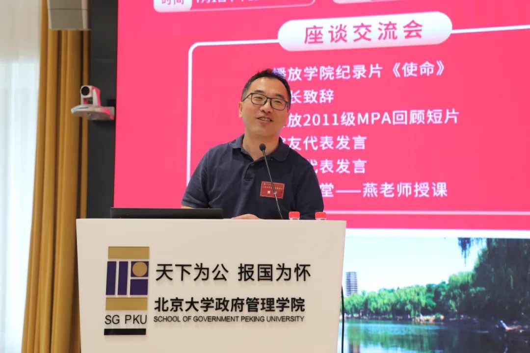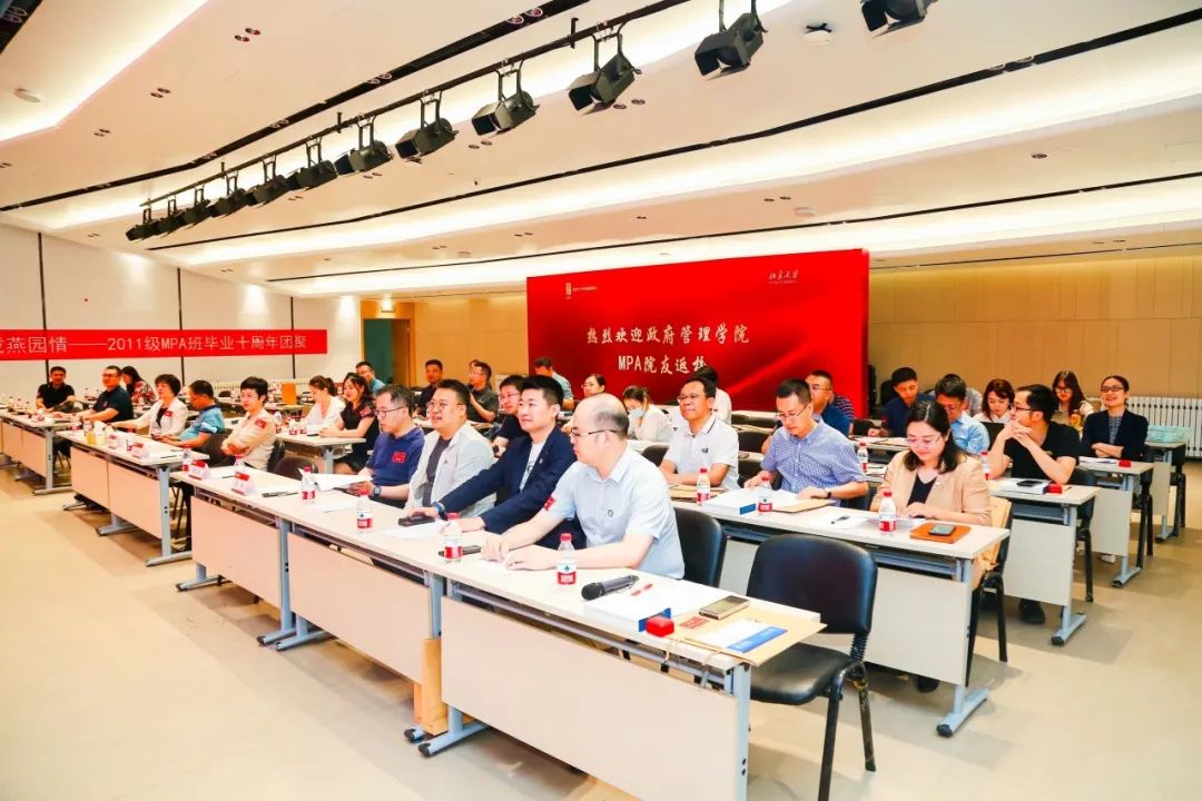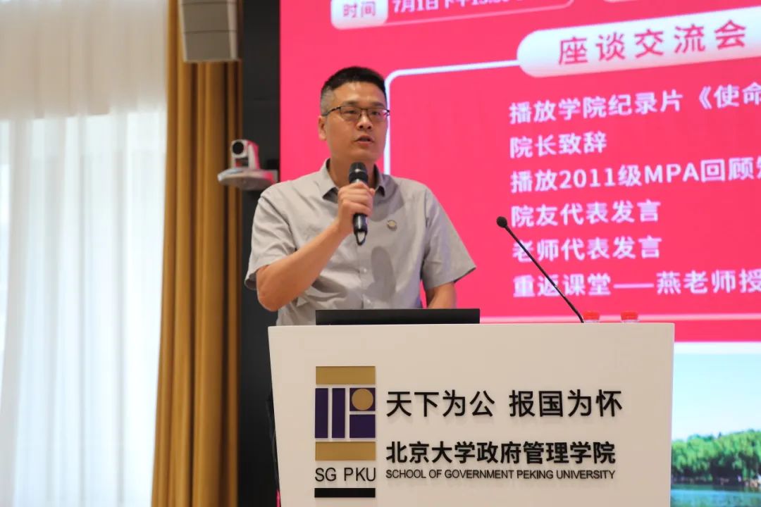 纵横四海,十年夏至。为纪念毕业10周年,2023年7月1日下午,政府管理学院2011级MPA班学员团聚燕园,重叙峥嵘岁月,共话前程万里。北京大学政府管理学院院长燕继荣、党委书记李海燕、副院长黄璜、党委副书记刘明乾、教师代表周志忍、金安平参加交流座谈会。座谈会于廖凯原楼342教室举行,由11级MPA班院友么宁主持。