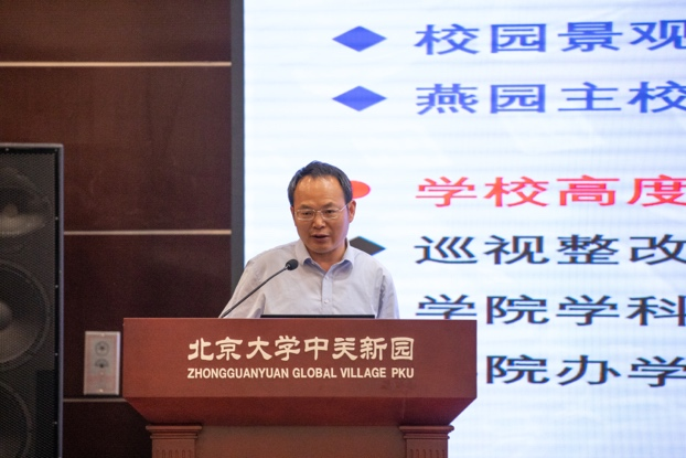 宁杰远介绍大楼筹资情况,重点汇报了小额捐赠情况,截止当日,北京大学教育基金会共收到来自海内外超过123位院友的慷慨捐赠。