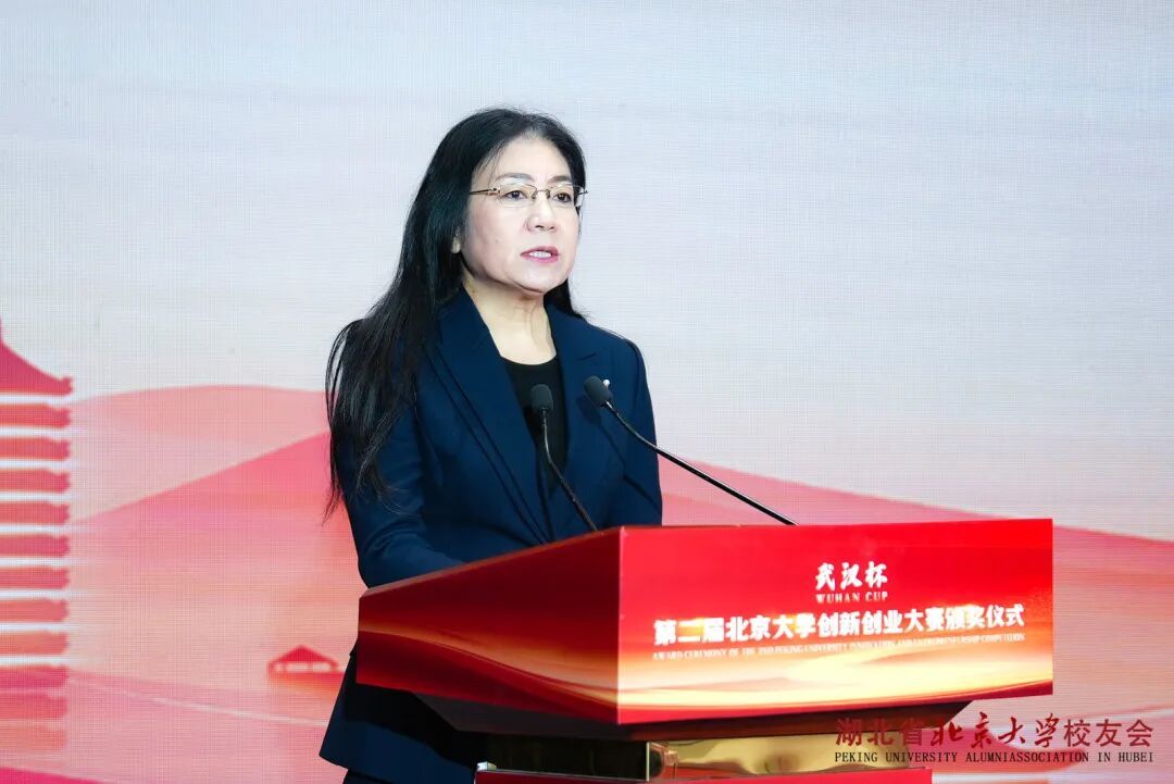 12月18日,“武汉杯”第二届北京大学创新创业大赛决赛颁奖仪式在武汉·中国车谷国际体育文化交流中心举行。武汉市委常委、组织部部长杨玲,北京大学党委副书记、副校长宁琦出席活动并致辞。北京大学讲席教授、未来技术学院院长肖瑞平,北京大学校友工作办公室主任、校友会副会长兼秘书长李文胜,北京大学双创学院院长刘德英,湖北省北京大学校友会会长刘萌等出席。