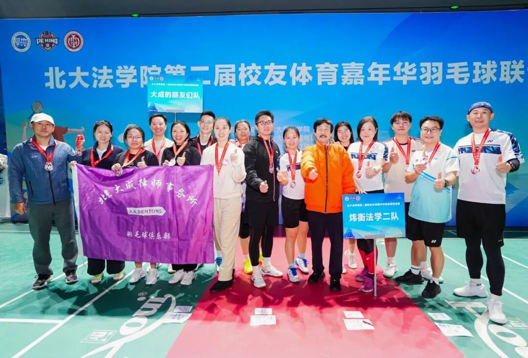 经过激烈角逐,炜衡法学一队夺得团体冠军、体育部队夺得团体亚军、炜衡法学二队夺得团体季军。北京大学法学院党委书记唐金楠、北京市大学生体育协会羽毛球分会秘书长李志贵分别为获奖队伍颁发奖牌。