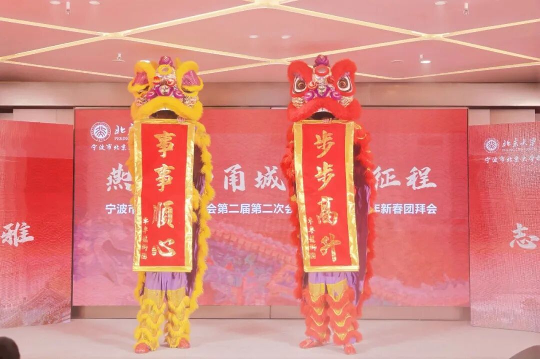团拜会上,宁波醒狮跃动开场,腾挪辗转间尽显欢腾瑞气;歌声《幸福中国一起走》声情并茂,唱响炽热家国情怀;非遗变脸绝技瞬间千面,引得满座称奇、掌声连连。各类节目如一幅徐徐展开的人文长卷,传统与时代交响,温情与昂扬共鸣,曼妙歌舞、校友自编自演的诗朗诵、器乐演奏等节目,充分展现出北大人的多才多艺与深厚校友情谊。由十六位校友倾情朗诵的《当燕园遇上甬城》,字句间流淌着对燕园的绵长思念,更饱含对甬城的深沉热爱,激起全场脉脉共鸣。昆曲《牡丹亭》经典选段婉转低回,水磨雅腔里尽展东方韵味。