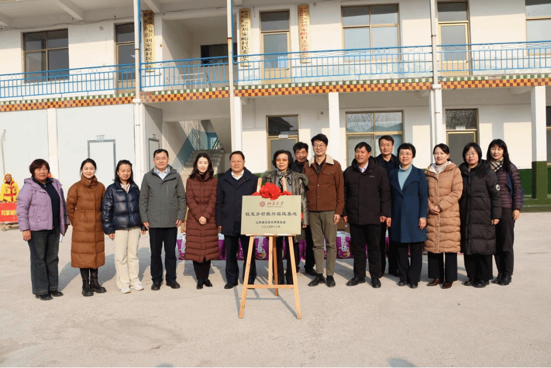 揭牌仪式现场,济南市委组织部人才工作一处二级调研员郭雷、梁守兰、南部山区管委会组织人事局副局长王辉媛、刘家峪村党支部书记刘孝君共同为实践基地揭牌。活动中,山东北大校友会王伟所属单位还为刘家峪村 70 岁以上老人送上米面油等慰问品,传递新春祝福与关怀。