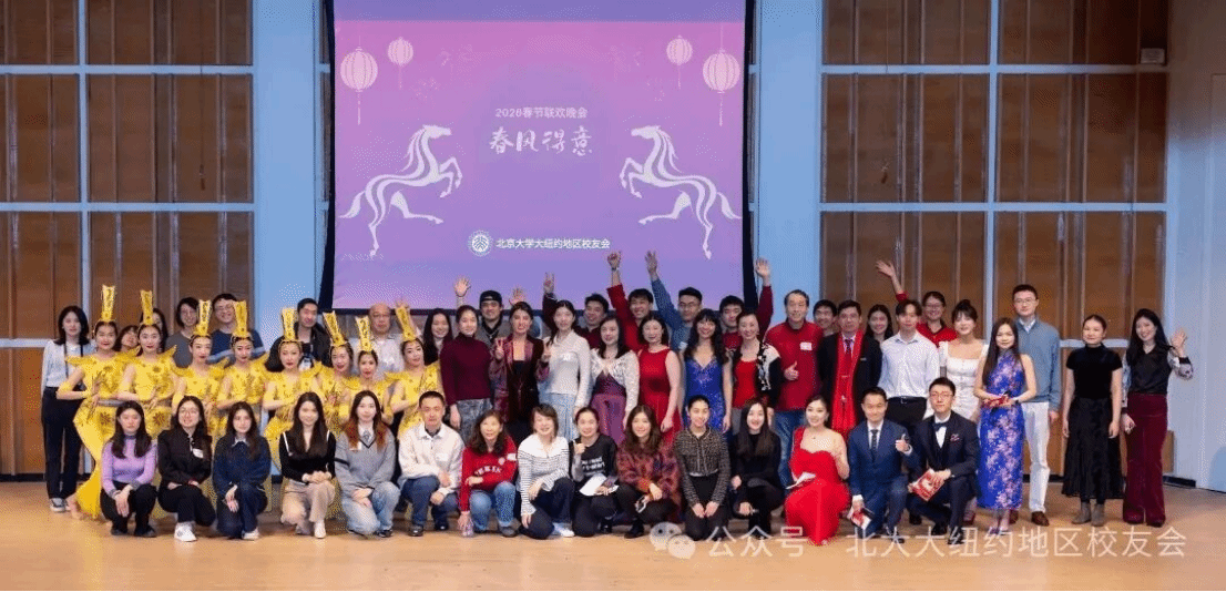 2 月 21 日,北京大学大纽约地区校友会在 Kaufman Music Center 成功举办 “春风得意” 春节联欢活动,近 500 位校友、嘉宾与亲友欢聚一堂,共庆农历马年新春。作为校友会连续第二年独立举办的春节联欢晚会,本届活动在节目策划、舞台呈现与互动环节全面升级,以多元的表演形式、热烈的现场氛围,凝聚起海外北大校友的社区力量,也为 2026 年北京大学大纽约地区校友会系列活动拉开序幕。