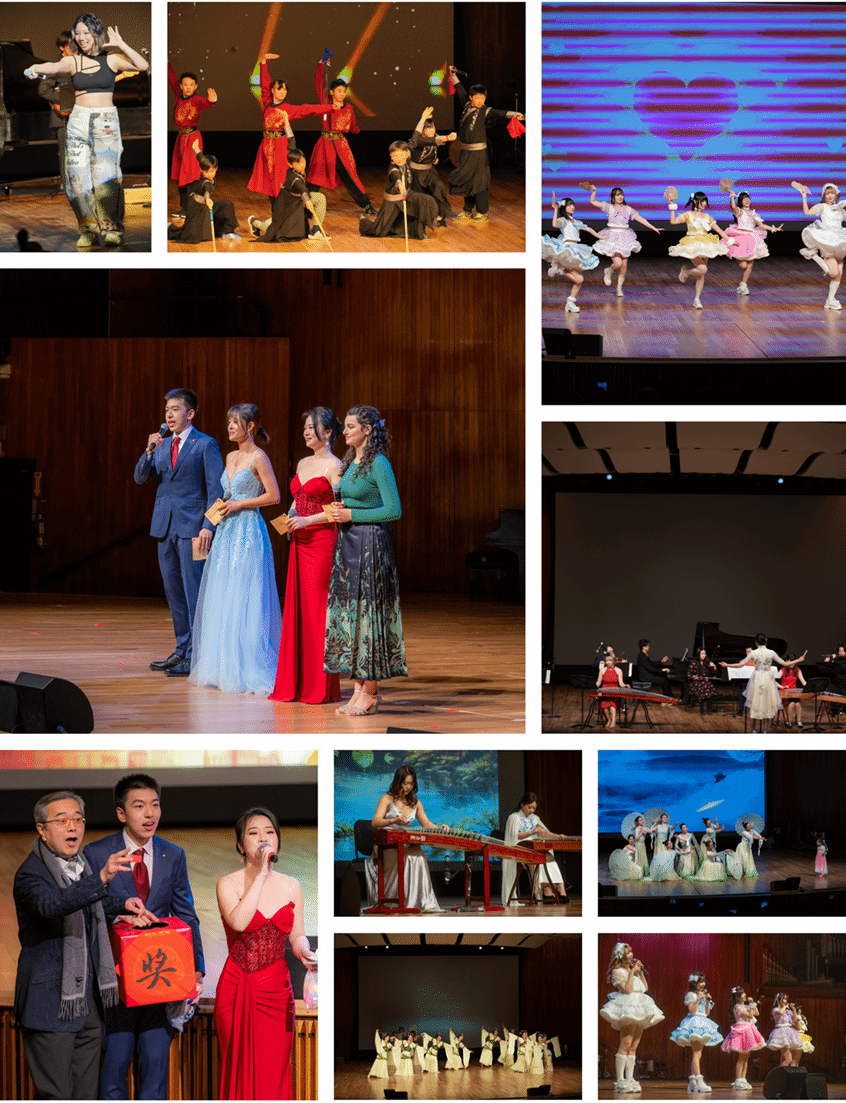 丝竹相和,中西合璧。伯克利音乐学院翁慧教授与TwinRoot Zheng Lab带来古筝合奏《百花引》与中西乐器融合作品《江南》,在传统之上探索当代表达。MIT CSSA Mass Ave国乐团以《音乐宝盒:国风组曲》开启一场听觉之旅,从《西游记》到《男儿当自强》,小提琴、大提琴、钢琴与二胡、笛子、古筝交织对话,串联起熟悉的旋律与崭新的感动。Mike’s Quartet以爵士乐四重奏演绎经典曲目《You Stepped out of a Dream》,致敬传统亦融入创新。从古典到爵士,从东方到西方,器乐类节目以音符绘就一幅多元共融的音乐画卷。