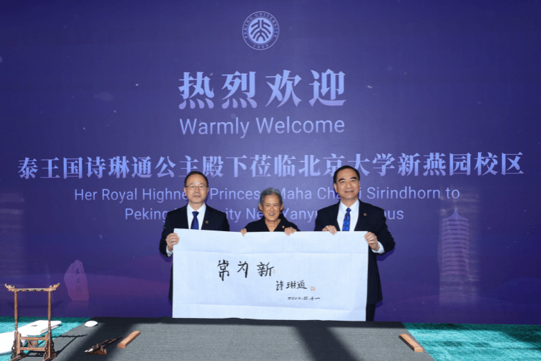 活动尾声,诗琳通公主来到学术交流中心大厅,欣然提笔,为北京大学新燕园校区题词“常为新”。这一题词饱含着公主对北大守正创新、追求卓越的美好祝愿,也为本次访问画上了圆满句号。