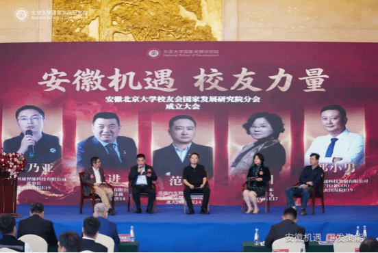 4月19日,安徽北京大学校友会国家发展研究院(以下简称“北大国发院”)分会成立大会在安徽合肥举行。本次大会以“安徽机遇 国发聚能”为主题,邀请北大国发院院长黄益平教授、安徽本土龙头科技企业高管——科大讯飞集团公司副总裁方明博士做前沿行业分享。此次分会成立获得了北大国发院校友会与安徽北京大学校友会的鼎力支持。安徽北京大学校友会荣誉会长秦德文、会长赵国华、党支部书记陈茂新,副会长唐明松、常传兴、梁万标等校友代表应邀出席。北大国发院各地校友、兄弟高校校友会代表也齐聚一堂,与安徽本地国发院校友共同见证这一重要时刻。