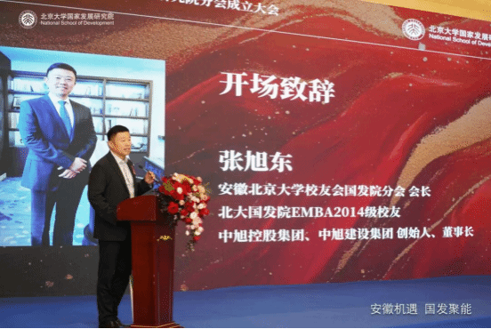 会议伊始,安徽北京大学校友会国发院分会会长、中旭控股集团董事局主席张旭东首先致辞,对远道而来的母校领导、各界嘉宾及在皖校友表示热烈欢迎,并回顾了校友会筹备历程与未来工作愿景。