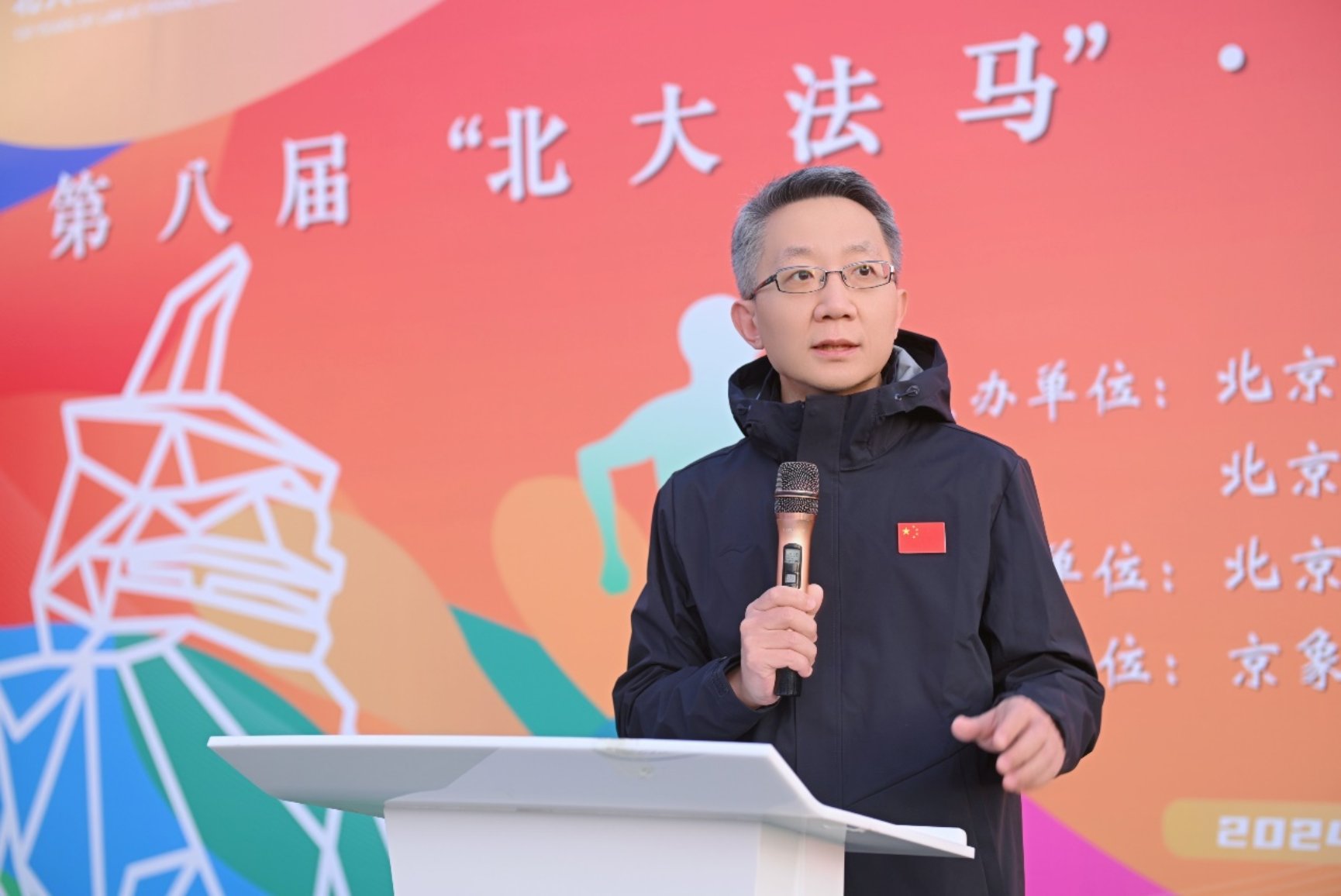 郭雳在致辞中向远道而来的各位校友表示热烈欢迎,对筹备本次活动的组织团队表示感谢。他表示,在北大法学院走过百廿征程这一历史节点,北大法马12小时健康跑不仅是一场体育竞技活动,更是一次精神的洗礼与升华。他强调,作为北大法律人,更要积极践行重视体育、追求健康的生活方式,弘扬北大精神,以强健体魄书写北大法律人的崭新篇章。