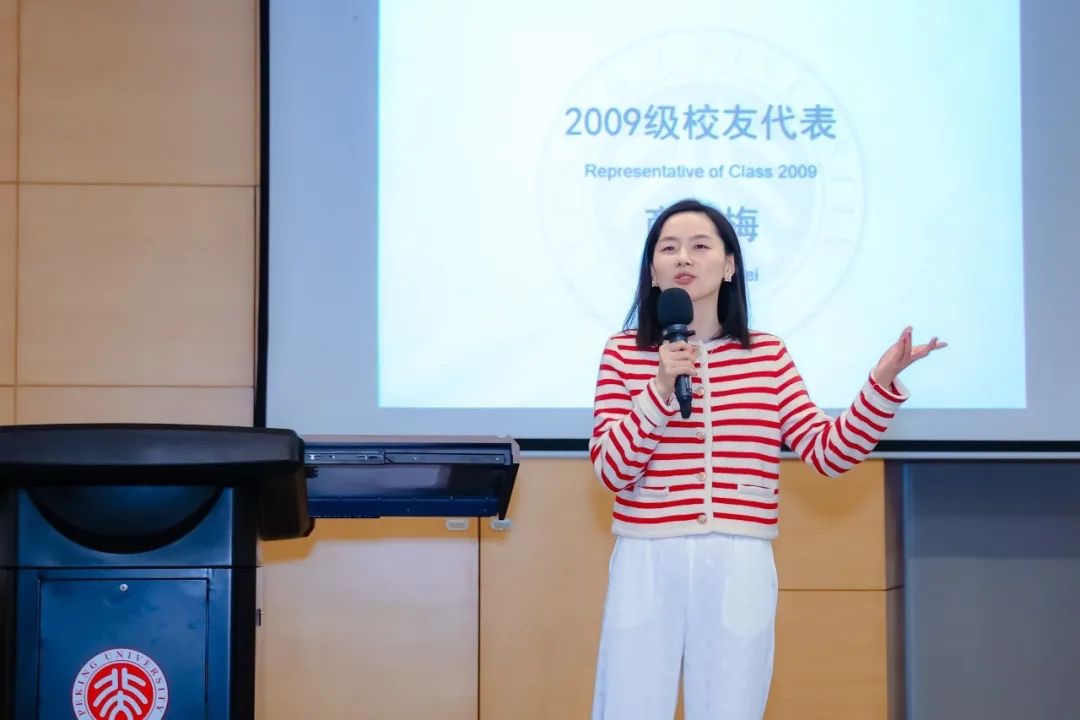 2009级校友代表商骏梅对比了校友们的十年前和十年后,十年前都是朝气蓬勃的学生,无所顾忌畅想未来,十年后则多了一些稳重和焦虑。她祝愿STL越来越壮大,各位同窗的发展越来越好。
