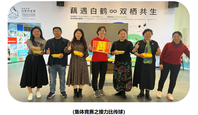 校友们齐聚“全世界离白鹤最近的地方”——白鹤小镇,观鹤舞于鄱阳湖畔,听鹤鸣于五星保护区,亲身感受以鹤为邻和谐共生环保理念催生的美好生态。在“高颜值”的共生馆科普学习体验后,姐妹们在秘书处朱凌艳、魏巍两位副秘书长的组织下开展了“海底采珍珠”、“稳健踢毽子”和“接力比传球”等个人和集体参与的有奖趣味竞赛活动,姐妹们感受到了久违的运动活力和快乐竞赛成就。女神节踏青联谊活动最后在杨颖秘书长表演和传授“心有灵犀一点通”、“祖传秘功猜文字”等“特技”的欢笑声和赞叹声中结束。