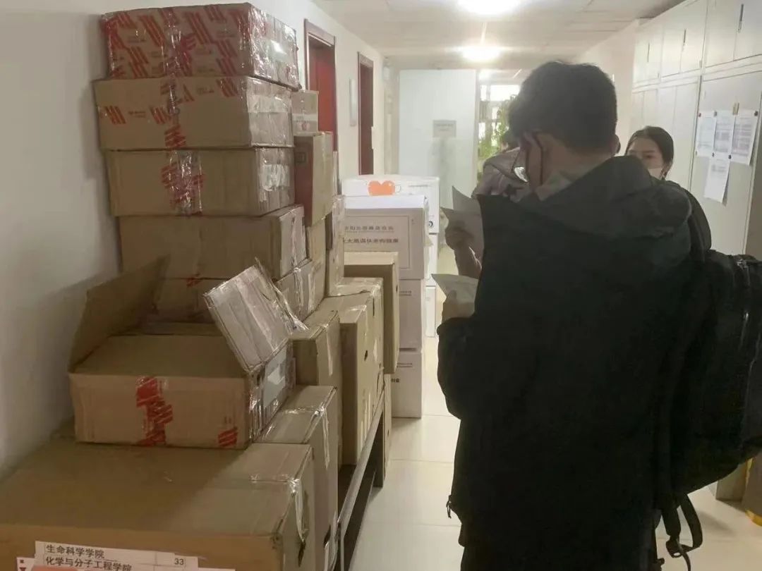 近日,一批北大校友面向北大离退休教职工定向捐赠的抗疫物资,通过二级单位分发到学校离退休教职工手中。该批物资包括血氧仪1500个、口罩7500个、抗原试剂7500盒、维C泡腾片1500盒。本次捐赠由北京大学校友工作办公室主任、北京大学校友会副会长兼秘书长李文胜发起调度,湖北省北京大学校友会、北京大学加拿大校友基金会等海内外校友组织共同协调“北京新阳光慈善基金会·北大校友全球抗疫专项基金”相关款项,北京新阳光慈善基金会负责物资采购。