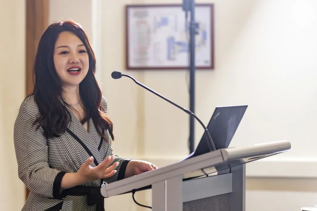 在主持人简短诚挚的欢迎辞后,北京大学墨尔本校友会会长童云云代表理事会作年度工作报告。她回顾过去一年北京大学墨尔本校友会理事会开展的各项工作,包括举办七次理事会议、四场主题活动、五场公益讲座、两次理团建活动,筹办五个兴趣小组,以及多次参与墨尔本高校校友会活动,全面展现北大人在墨尔本团结一心、其乐融融的精神风貌和活动风采。童云云特别感谢理事们的辛勤付出和校友们的大力支持,并表示未来将通过“联谊活动、创业支持、信息交流”助力奋斗在各行各业的校友,达成“服务校友,贡献社会”的目标。