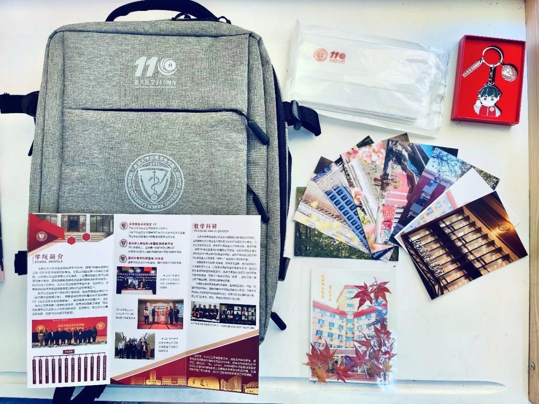 一个印着院徽的双肩书包:代表着校友们从校园扬帆起航,今日返校归来仍是少年,同时北大公卫人也秉承北大“兼容并包”的胸怀,背负“公行天下 卫戍健康”的责任与使命。