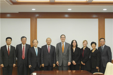 11月1日下午,普林斯顿大学校长克里斯托弗?伊斯格鲁布(ChristopherL.Eisgruber)一行来到北京大学访问。北京大学校长王恩哥在临湖轩会见了来宾。北大副校长陈十一及田刚院士、鄂维南院士等陪同会见。
