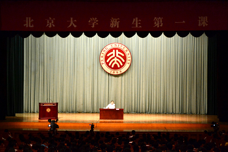 两个多小时的课程中,朱善璐主要讲了三个内容:一是关于大学;二是关于北大;三是关于北大青年学子的责任和担当。