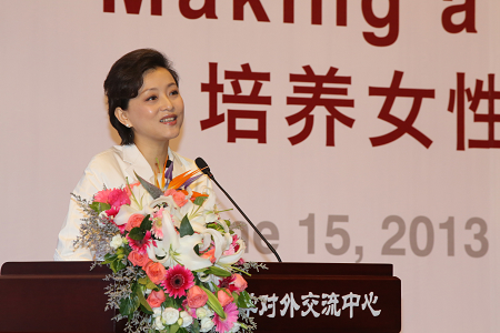 陈至立则就开发和发挥女性领导能力分享了自己的看法。她强调,大力开发和充分发挥女性领导能力是时代潮流和人类文明进步的必然趋势,知识经济时代女性获得了前所未有的展现聪明才智的平台,女性受教育程度的提高为女性领导力的开发奠定了坚实的基础,中国女性领导力也不断得到提升,弘扬自尊、自信、自立、自强的精神,为实现“中国梦”而奋斗,是女性领导力提升的精神动力。同时她也指出,进一步提升女性领导力任重道远,祝愿新一代的女大学生们在这个充满机遇和挑战的时代中树立远大理想,脚踏实地,埋头苦干,相信在实现“中国梦”的伟大奋斗中,必将涌现出更多的杰出女性领导人。