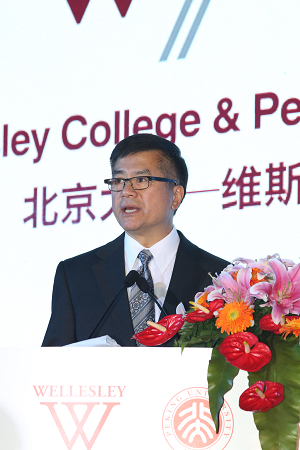 柯杨在欢迎辞中表示,女性领导者在当今世界中正扮演愈加重要的角色,北大也十分重视女性领导者的培养和发展,自1920年起开始招收女生,开创中国国立大学男女同校之先河,而维斯理学院作为女性教育的领先者,曾培养出冰心、希拉里?克林顿等一大批颇具影响力的世界女性领导人,也一直为中国的优秀年轻女性敞开大门。在这种历史背景下,北京大学与维斯理学院合作,汇集各地、各行的优秀女性领导者共同讨论女性领导力的价值和人才培养的途径,将对推进女性领导力的人才培养发挥更为良好的作用,两校合作也将进一步繁荣中美人文交流事业,促进中美两国的互信和交流。