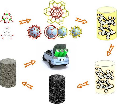 邹如强课题组的此项研究提出一种全新的策略,以新型金属-有机凝胶自身为模板制备纳米多孔材料。这种方法不仅从微观尺寸上对目标产物的结构进行了理性设计,而且大大简化了合成过程,适用于材料的扩量制备。所得纳米多孔材料具有超高的比表面积、分级孔道结构和大的孔容,其氢气吸附性能可与目前最好的多孔吸附剂相比较。同时,该研究通过简单地处理凝胶前躯体,得到了具有分级孔道结构的三维块体多孔碳材料,该材料在锂-硫电池体系中得到了良好的运用,其连通的孔道结构加快了传质传递过程,高比表面积的碳骨架同时提供了较好的导电网络和硫的束缚基底,为锂-硫电池正极材料的设计提供了一个新的思路。