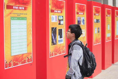 巍巍上庠,百年辉煌。2013年5月4日是北京大学的115年华诞,为此,北京大学党委宣传部特编辑制作了“加快创一流 共圆中国梦——百年校庆以来北京大学建设成就巡礼”展板,日前已在北大百周年纪念讲堂广场展出,欢迎北大师生及各界人士前去观看。