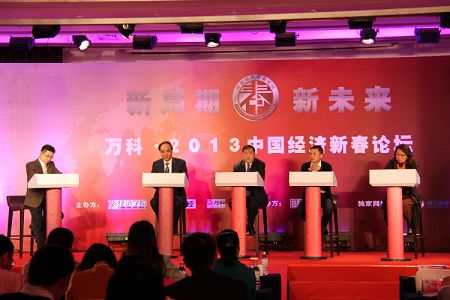 第一场论坛的主题是中国宏观经济,北京电视台长盛担任主持,北京大学校长助理黄桂田教授、财政部财政科学研究所所长贾康研究员、中国人民大学经济学院副院长刘元春教授参与讨论,预测2013年宏观经济走势,并对全球日趋宽松的货币政策与中国货币紧缩、通胀、房产税、经济复苏等问题进行了研讨。