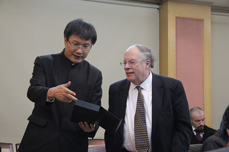 3月11日,北大高研院邀请国际哲学团体联合会主席、世界哲学大会主席威廉?麦克布莱德(William McBride)教授访问北京大学,并与杜维明院长就“哲学作为一种公共话语的反思”进行对话。