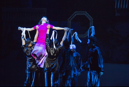 大幕拉开,似灯笼似鸟笼的巨大舞台、似低吟似倾诉的旖旎腔调把观众带入深宅大院的世界,和剧中人物一起体会她们的喜怒哀愁。充满东方意象的舞台布景和服装设计,既有古典之韵又赋予新的时代内涵;再加上紧凑的剧情编排,演员精彩的演唱,相得益彰的舞蹈表演,无不牢牢地吸引了观众的注意力,不时引来现场热烈的掌声和赞许。