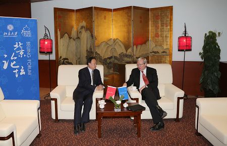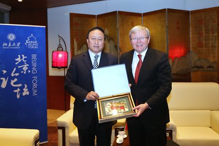 2012年12月28日,北京大学党委书记、校务委员会主任朱善璐教授会见了来访的澳大利亚前总理、现任国会议员陆克文先生,双方就北京论坛十周年回顾总结及未来发展等议题进行了深入的交流和探讨。北京论坛常务副秘书长谷雪等陪同会见。