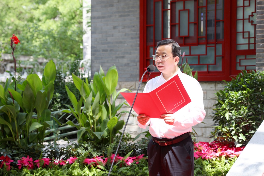 揭牌仪式上,董志勇向参与“南门驿站”项目的所有老师和工人师傅们表示衷心的感谢,并向长期以来为北大师生提供贴心服务的“外卖小哥”致以诚挚的问候。他指出,民生无小事,南门外卖收取的安全和卫生问题一直以来备受校领导和学校有关部门的重视。他感谢市区两级社会工作部对该项目给予的指导和支持,期待进一步加强合作交流,在“友好校园”建设方面形成示范引领。