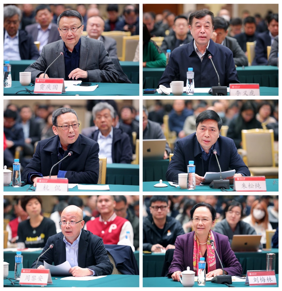 全国政协常委、北大国际关系学院贾庆国教授,全国人大代表、全国人大外事委员会委员、北大国际关系学院李义虎教授,全国人大代表、北大考古文博学院杭侃教授,全国政协委员、北大智能学院院长、北大人工智能研究院院长朱松纯教授,全国政协委员、北大光华管理学院教授周黎安,全国政协委员、北大第一医院院长助理、老年病内科主任刘梅林教授等分别作专题报告。他们分享了参加全国两会的见闻和体会,汇报了各自建言资政的履职情况,并结合自身所从事的专业领域就学习贯彻习近平总书记有关重要讲话和全国两会精神,加快学校“双一流”建设提出了意见建议。