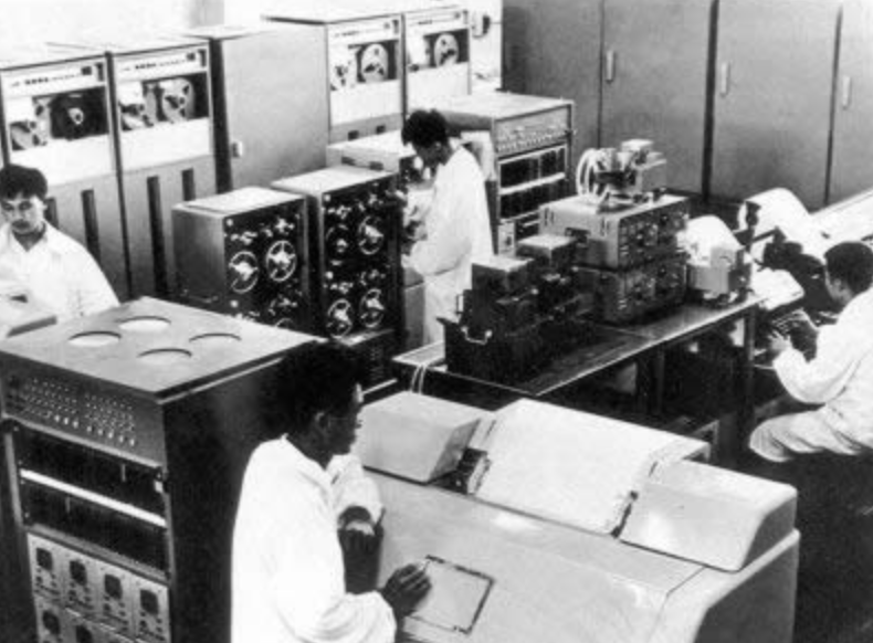 1956年,中国的计算机科学发展进入了快车道,第一代和第二代计算机先后问世。1969年10月,150计算机研制工作被列为国家重点科研项目,北京大学作为新的研制单位加入了工程。150机的样机在1973年正式问世,并随后投入到石油勘探和油田开发的实战之中。这是我国独立自主开发研制的第一台运算速度达到每秒百万次的大型计算机,整个计算机系统规模庞大,一共使用了小规模集成电路58000多块,厚膜电路7700多块,存储器磁芯800万颗。