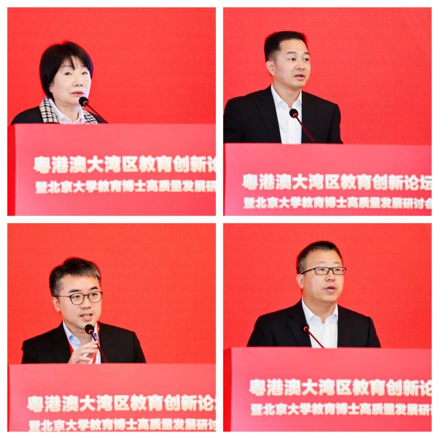在开幕式上,北京大学党委常委、副校长、北京大学深圳研究生院院长张锦院士回顾了作为“南燕园”的北大深研院的发展之路。经过22年的发展,深研院将以“问题导向、南北联动、AI牵引、创新融合”的未来发展理念,探索新型国际化办学模式,建设成为北京大学新工科的“南方基地”。中国教育发展战略学会常务副会长康宁在致辞中希望大家可以思考3个问题:战略新兴产业与高等教育转型、湾区人才培养体制机制的关键、创新人才涌现的机制与其相关制度安排。香港中联办深圳联络部副主任伍俊斌表示,在粤港澳大湾区教育创新过程中,中联办(紫荆学院)将发挥桥梁纽带作用,支持香港融入国家、深港人才交流,以及建设粤港澳国际人才高地。香港特区政府教育局副局长施俊辉表示,在粤港澳大湾区发展政策下,将支持香港高校在大湾区内地城市通过建立多边及跨学科合作关系,发挥香港高等教育“背靠祖国、联通世界”的优势,为科研、知识转移和产学研结合提供有利条件。深圳市教育局副局长钟义应表示,近年来深圳市委市政府高度重视高等教育发展,推动构建国际化、开放式、创新型高等教育体系,在新的历史发展阶段,深圳市高校将与大湾区各高校协同合作,推动高等教育高质量发展及大湾区创新发展。开幕式由北京大学教育学院党委书记张晓黎主持。