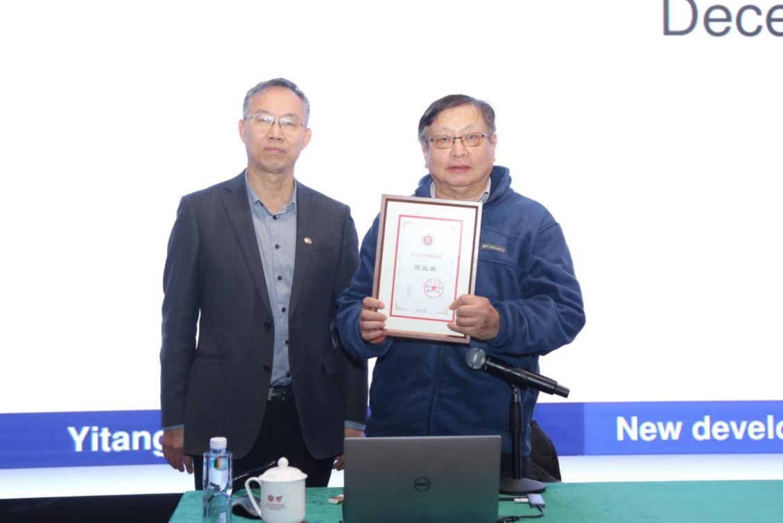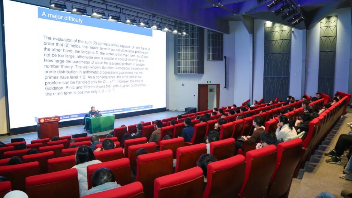 时隔四年,著名数学家、美国加州大学圣芭芭拉分校张益唐教授于近日回母校访问。2023年12月25日下午,张益唐在北京大学智华楼文远堂作题为“New development in prime distribution”的公众报告,分享他围绕孪生素数猜想所做的研究工作。本次活动是北京大学数学学科创建110周年杰出学者系列报告之一,北京大学数学科学学院院长陈大岳教授主持报告并向张益唐颁发“北京大学优秀校友”证书。