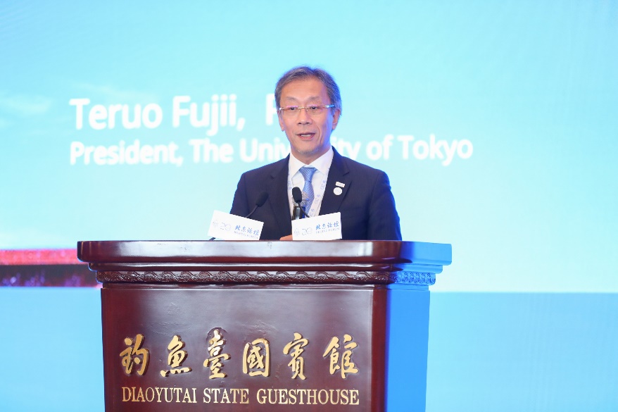 第十四届全国政协副主席、民盟中央常务副主席、中国科学院院士王光谦,第十届、十一届全国人大常委会副委员长、第十二届全国政协副主席、中国科学技术协会名誉主席、中国科学院院士韩启德,教育部党组成员、中央纪委国家监委驻教育部纪检监察组组长王承文,北京市委常委、教育工委书记游钧,中国日报社社长兼总编辑曲莹璞,新华社副总编辑任卫东,人民日报社政治文化部主任张毅,中日友好协会常务副会长程永华,北京大学党委书记、校务委员会主任郝平及北京大学校长、中国科学院院士龚旗煌等校领导班子成员,以及日本原首相鸠山由纪夫、联合国教科文组织原总干事伊琳娜·博科娃、美国洛杉矶加州大学校长毕杰恩(Gene Block)、日本东京大学校长藤井辉夫、匈牙利罗兰大学校长薄慕往(Borhy Lászlo)、澳大利亚阿德莱德大学校长彼得·霍伊(Peter Hoj)、韩国崔钟贤学术院院长朴仁国、韩国SK集团原副会长金在烈等国际嘉宾出席开幕式。开幕式由北京大学副校长、教务长王博主持。